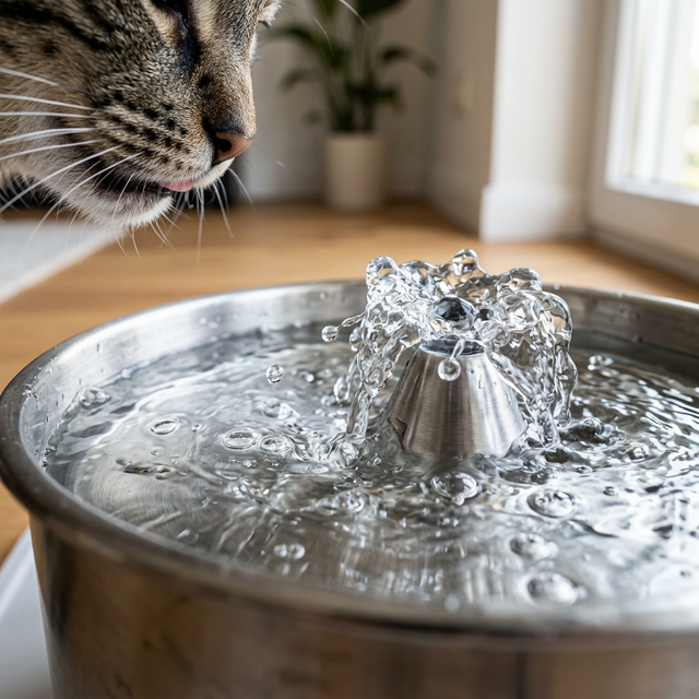 - Multiple water stations: Place bowls in several locations, especially for cats